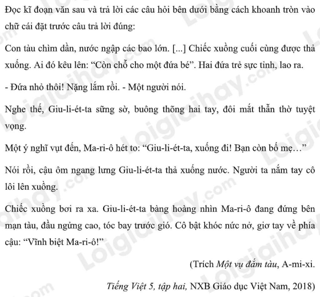 + Ma - ri - ô là một người con hiếu thảo: ý này không đúng. Vì đoạn trích không đề cập tới bố mẹ của Ma -ri - ô cũng như hành động của cậu đối với bố mẹ