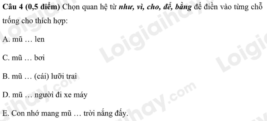 `E.` Con nhớ mang mũ vì trời nắng đấy