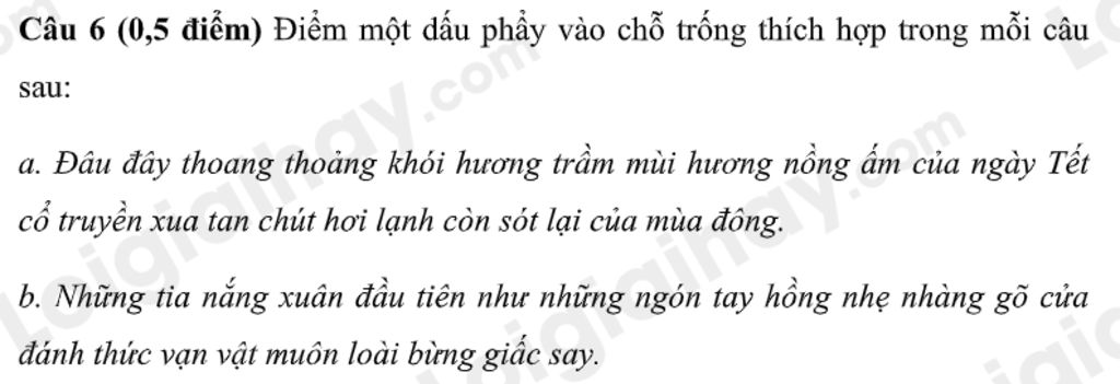 `=>` Câu hoàn chỉnh: Đâu đây thoang thoảng khói hương trầm, mùi hương nồng ấm của ngày Tết cổ truyền xua tan chút hơi lạnh còn sót lại của mùa đông.