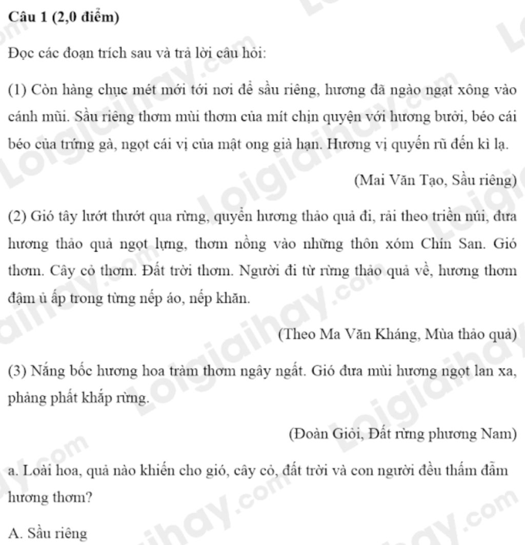 `a)`. `A`. Sầu riêng