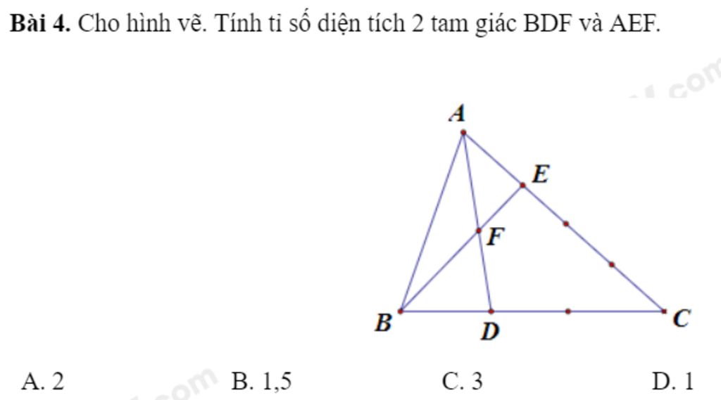Ta có SBFD = $\frac{1}{3}$ x SBFC (Chung chiều cao hạ từ đỉnh F và BD = $\frac{1}{3}$ x BC)