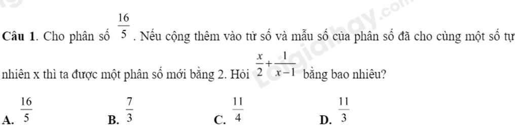 Nếu cộng thêm vào tử số và mẫu số của phân số đã cho cùng một số tự nhiên x thì hiệu giữa tử số và mẫu số của phân số mới không đổi là 16 – 5 = 11