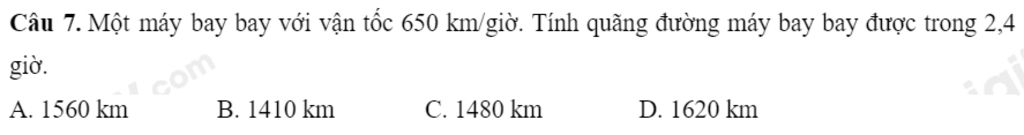 Quãng đường máy bay bay được trong 2,4 giờ là