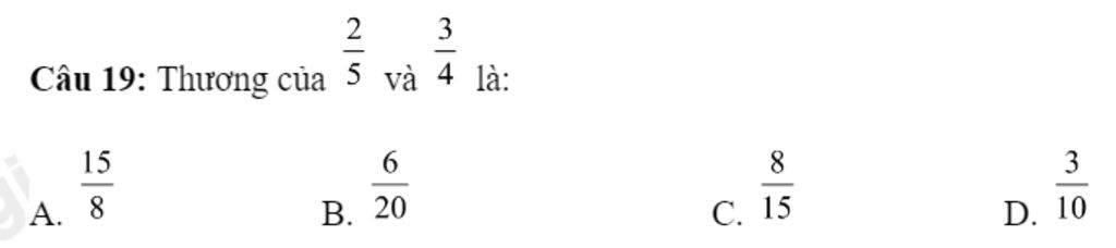$$$\frac{2}{5}:\frac{3}{4} = \frac{2}{5} \times \frac{4}{3} = \frac{8}{{15}}$