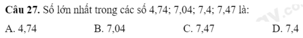 `+)` Ta xét `B,C,D` đó là: `7,04;7,47;7,4`