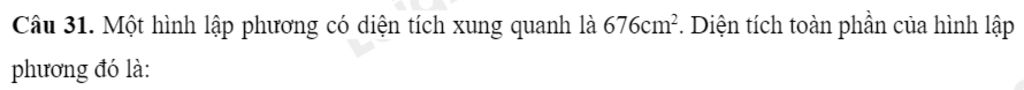 Vậy diện tích toàn phần của hình lập phương đó là `1014cm^2`.