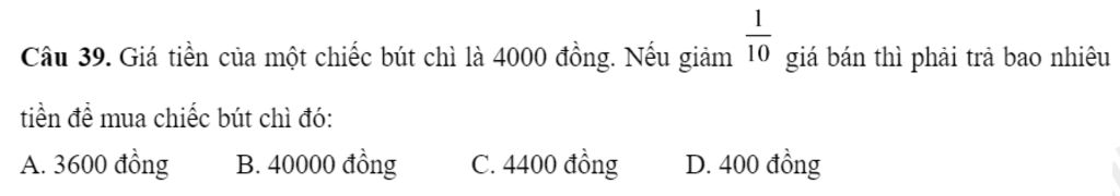 `4000xx(1-1/10)=4000xx9/10=\frac{36000}{10}=3600(đồng)`