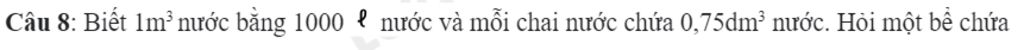 Một bể nước chứa `2250` lít nước có thể đóng vào số chai nước nói trên là:
