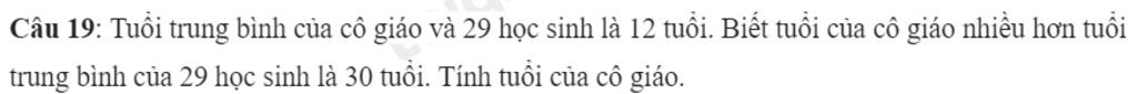 Tuổi của cô giáo và 29 học sinh là 12 x 30 = 360 (tuổi)