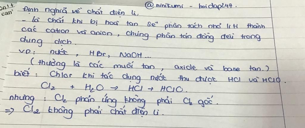$Cl_2$ không phải chất điện li. Chất điện li gồm: