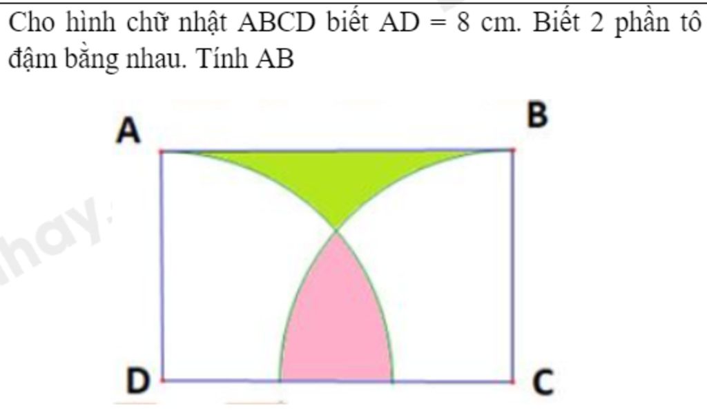 Vì 2 phần tô đậm bằng nhau nên $\frac{1}{4}$ diện tích hình tròn bằng $\frac{1}{2}$ diện tích hình chữ nhật.