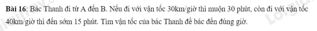 Vậy vận tốc của bác Thanh để bác đến đúng giờ là `36km\\h`