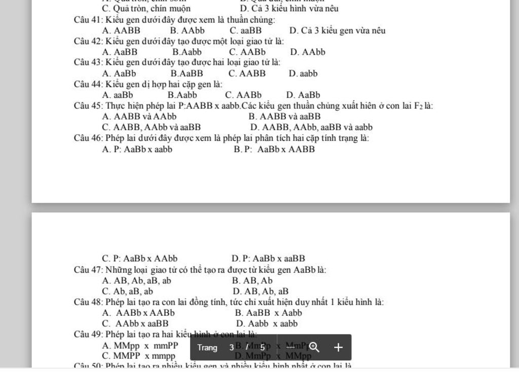 Câu 43: Kiểu gen dưới đây tạo được hai loại giao tử là:
