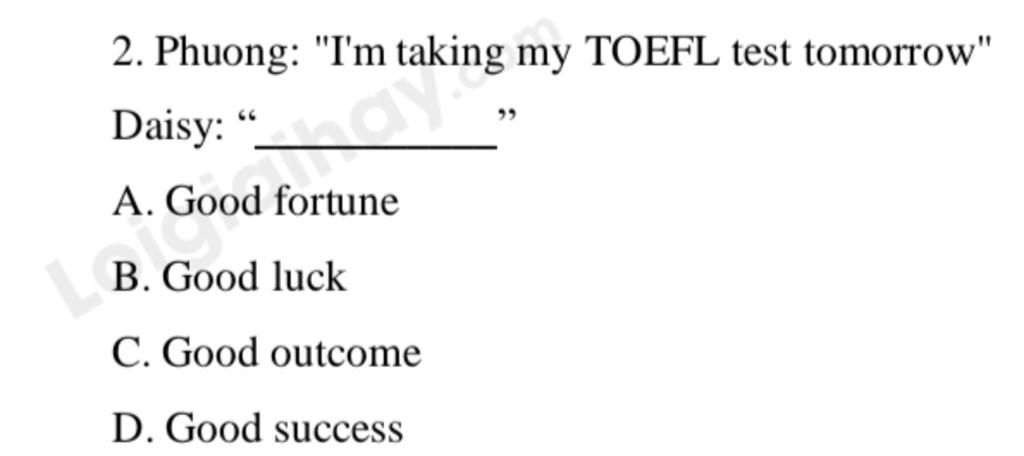 Phuong: "I'm taking my TOEFL test tomorrow" (Mình sẽ thi TOEFL ngày mai.)