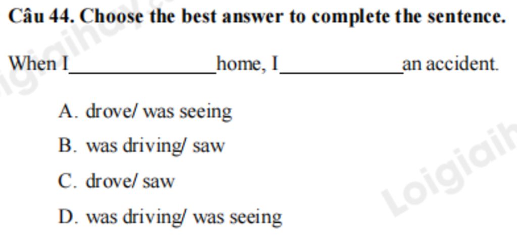 `->` Khi tôi đang lái xe về nhà, tôi đã thấy một vụ tai nạn.
