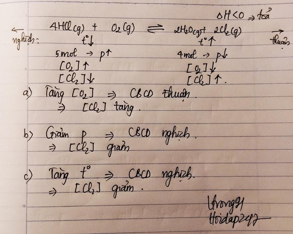 `=>`Tăng nhiệt độ làm giảm nồng độ $Cl_2.$