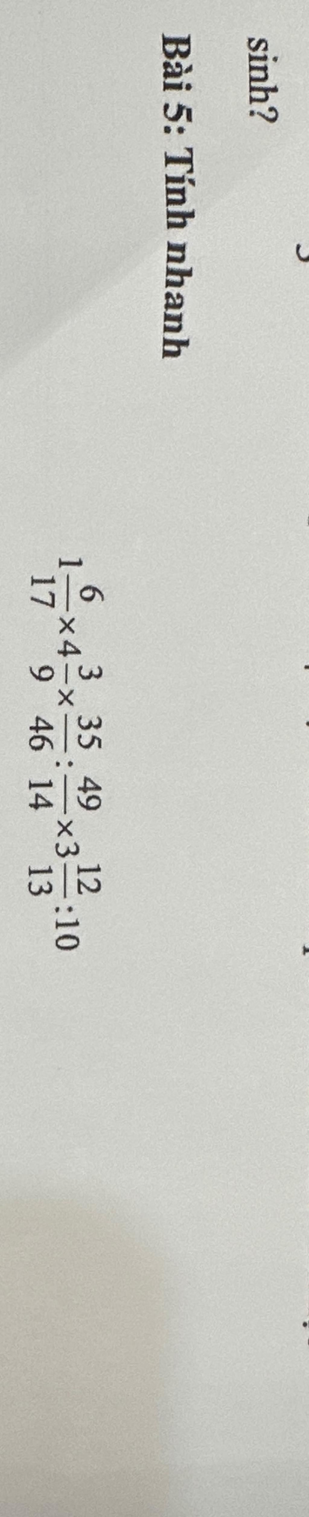 `=23/17 xx13/3 xx 35/46 : 49/14 xx 51/13 :10/1`