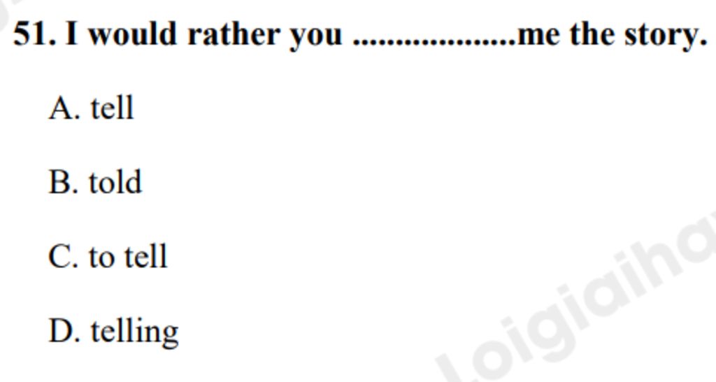 - S + would rather + S + V2/ed: ai thích ai đó làm gì