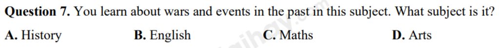 `@` Ta thấy '' in the past ''( trong quá khứ ) `->` Môn học mà học về quá khứ chỉ có Lịch sử