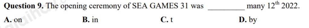 `-` Dịch `:` Lễ khai mạc SEA GAMES `31` diễn ra vào ngày `12 ` tháng `5` năm `2022`.