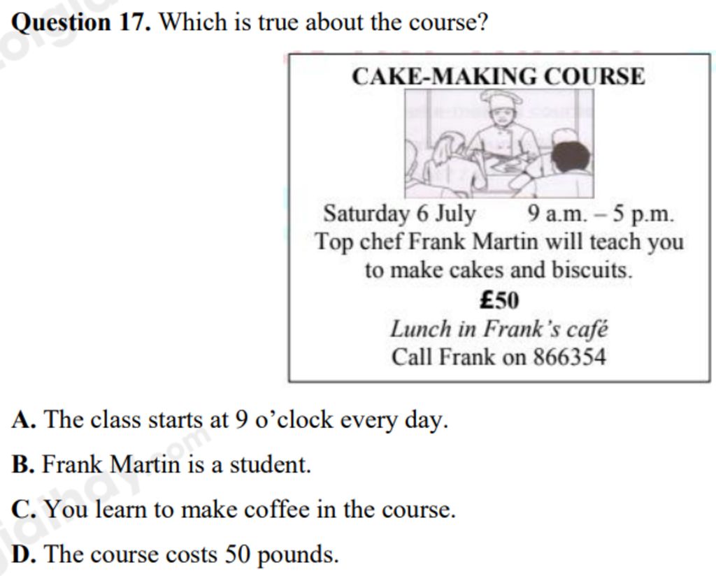 Top chef Frank Martin will teach you to make cakes and biscuits. `->` B, C sai