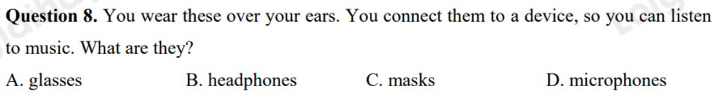 Question 8. You wear these over your ears. You connect them to a device, so you can listen to music. What are they?