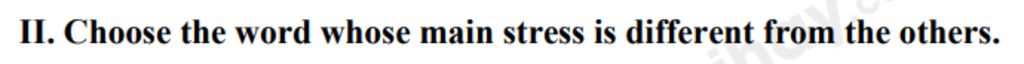 => Chọn `D`, trọng âm 1 còn lại trọng âm 2