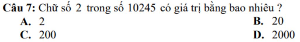 Chữ số `2` có giá trị là `200`