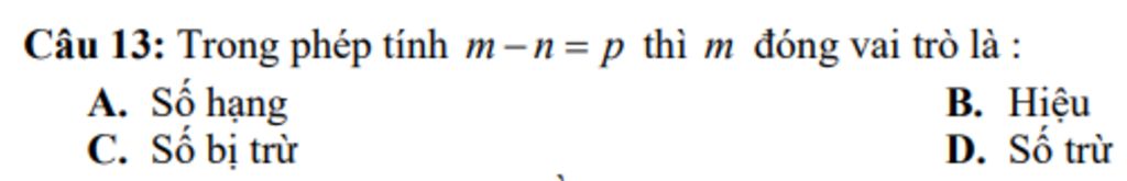 Đáp án : `C` , số bị trừ