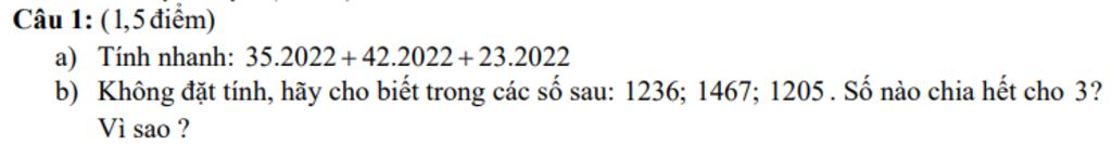 b.Số chia hết cho $3$ có tổng các chữ số chia hết cho $3$