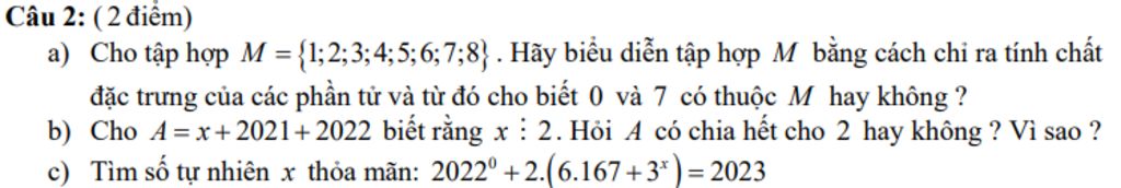 `a)` Ta có: Tập hợp `M` là tập hợp các số tự nhiên từ `1` đến `8`