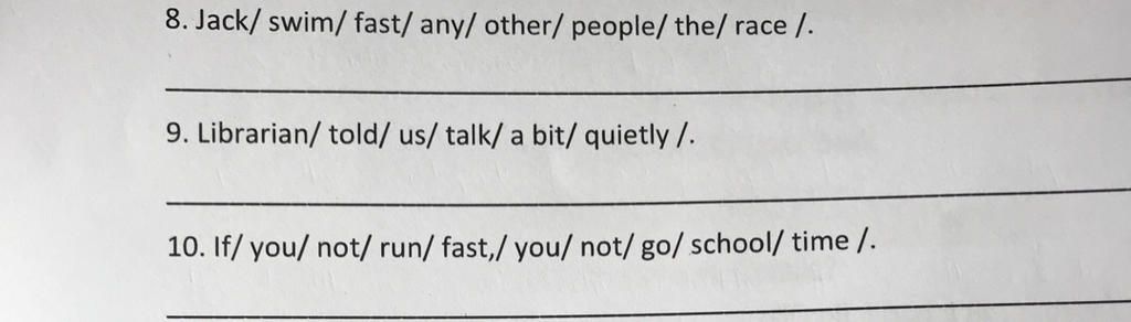 $\text{9. Librarian told us to talk a bit quietly.}$