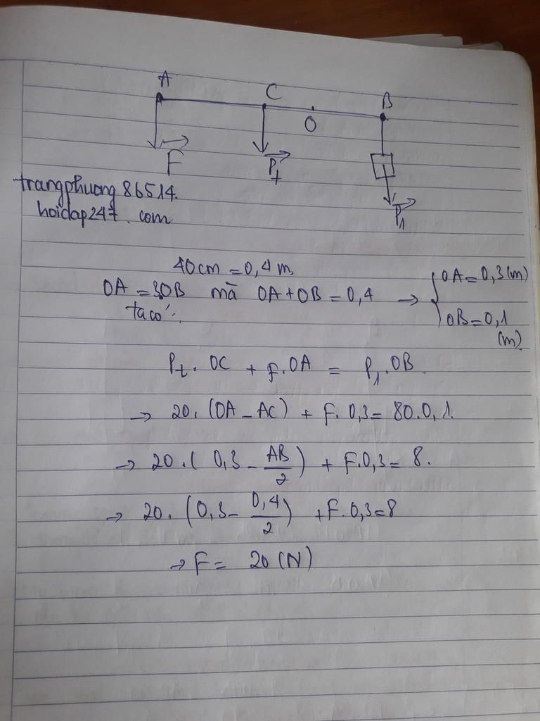\Rightarrow {F_1}.0,3 + 20\left( {0,3 - \dfrac{{0,4}}{2}} \right) = 80.0,1\\