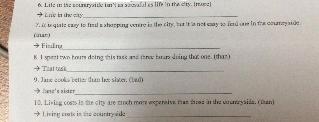 7. It is quite easy to find a shopping centre in the city, but it is not easy to find one in the countryside.