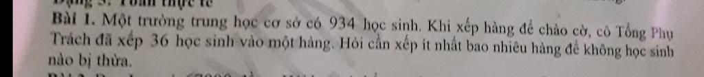 Bài I. Một trường trung học cơ sở có 934 học sinh. Khi xếp hàng để chào cờ, có Tổng Phụ