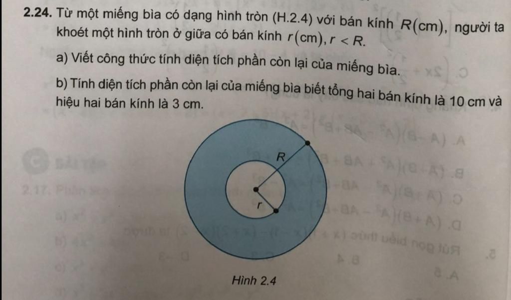 b) Ta có: π(R2 r2) = π(R r)(R + r) (*)