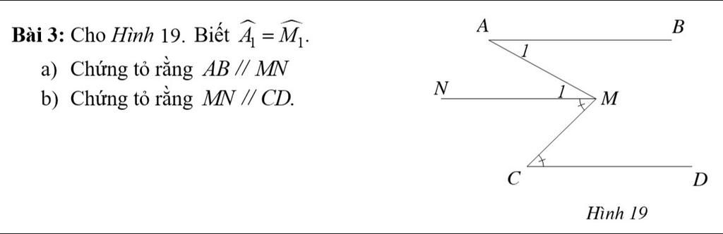a/ Có $\left \{ {{A1=M1} \atop {A1 và M1.ở.vị.trí.so.le.trong}} \right.$