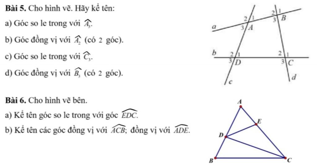 `d,` Góc đồng vị với `\hat{B_3}` là `\hat{A_3}` và `\hat{C_3}`