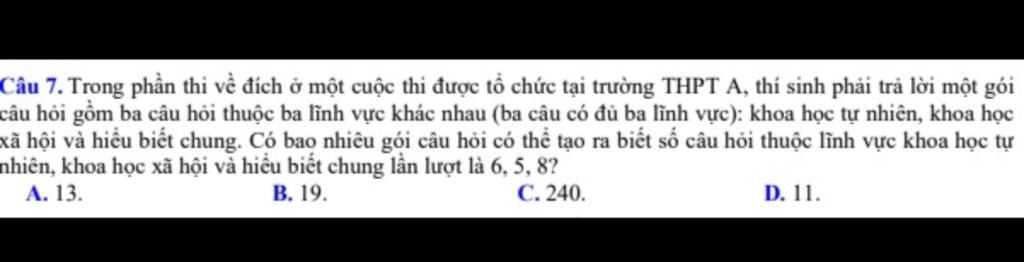 Câu 7. Trong phần thi về đích ở một cuộc thi được tổ chức tại trường THPT A, thí sinh phải trả lời một gói
