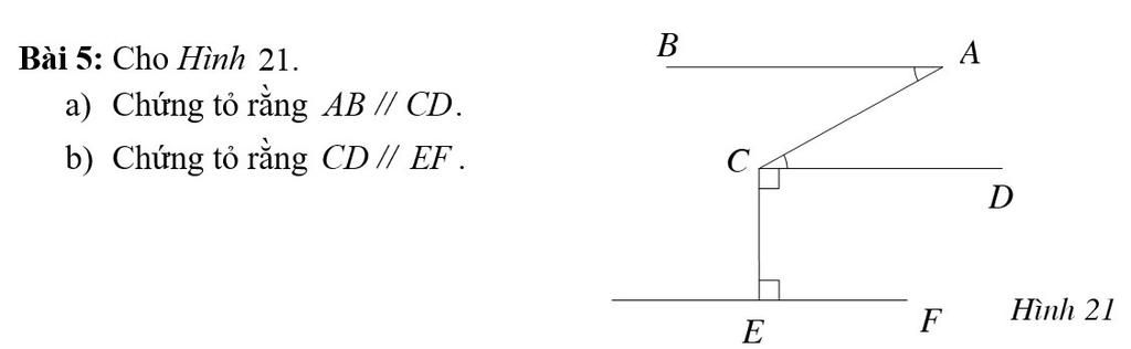 Ta có: `{(CD ⊥ CE),( EF ⊥ CE):} ⇒ CD //// EF` `(` Tính chất giữa vuông góc và song song `)`