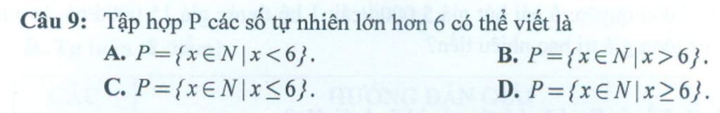 `=>` Đáp án đúng là: `P={x inNN|x>6}`