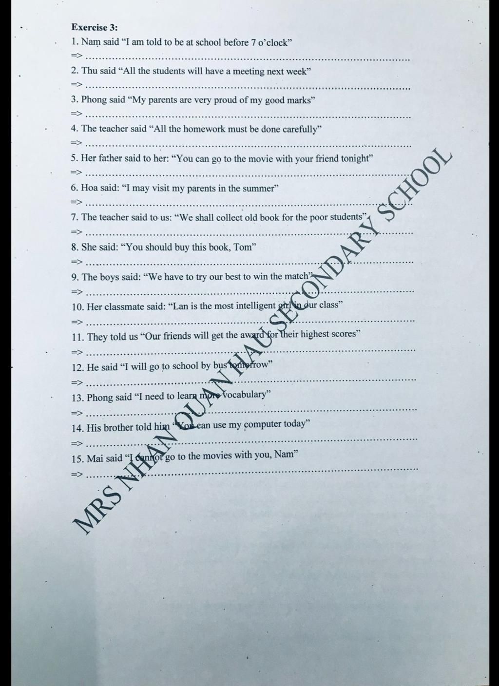 `1`.Nam said that he was told to be at school before `7` o'clock