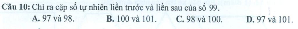 Vậy cặp số tự nhiên liền trước và liền sau của số $99$ là $98$ và $100.$