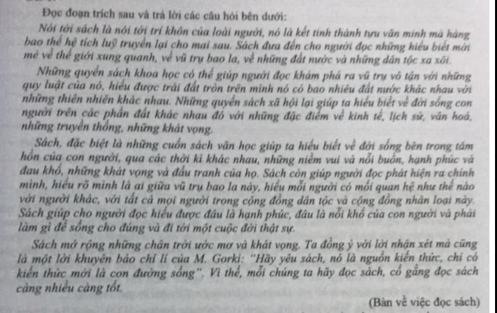 A. ... Nói tới sách là nói tôi trí khôn của loài người, nó là kết tinh thành tựu văn minh mà hàng bao thế hệ tích luỹ truyền lại cho mai sau.
