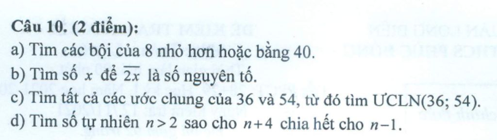 $d) (n+4) \ \vdots \ (n-1) \text{ với } n>2\\ \Rightarrow A=\dfrac{n+4}{n-1} \in \mathbb{N}\\ \Rightarrow \dfrac{n-1+5}{n-1} \in \mathbb{N}\\ \Rightarrow 1+\dfrac{5}{n-1} \in \mathbb{N}$