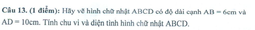 Vậy chu vi hình chữ nhật `ABCD` là `32cm`, diện tích hình chữ nhật `ABCD` là `60cm^2`