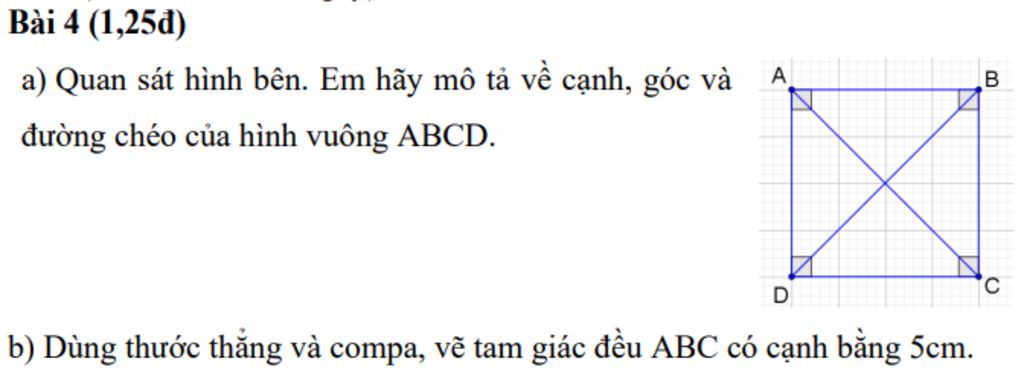 $a)$ Bốn góc $A,B,C,D$ bằng nhau và bằng $90^\circ$