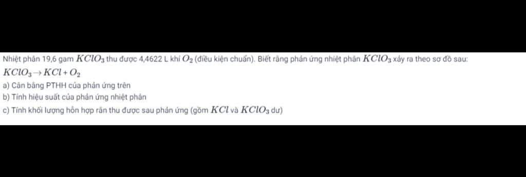 `a)\ 2KClO_3` $\xrightarrow{t^o}$ `2KCl+3O_2`