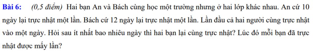 => cứ 60 ngày 2 bn lại trực chung 1 lần