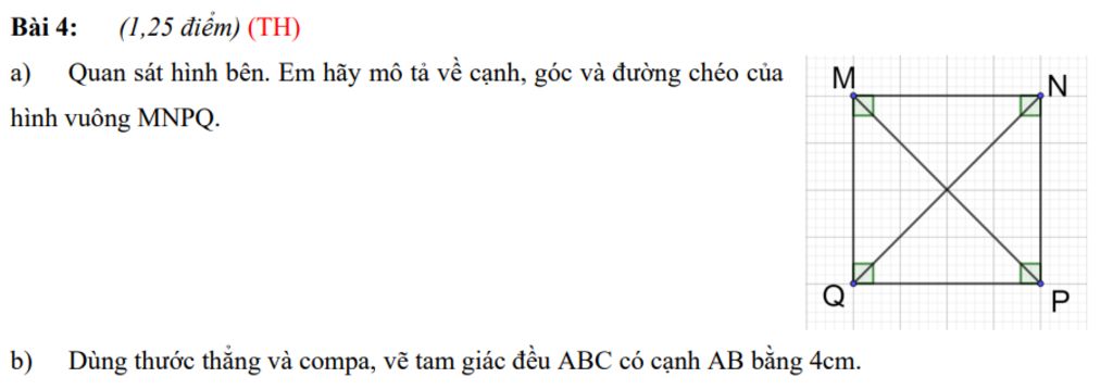 +) Góc: `hat{M} = hat{N} = hat{P} = hat{Q} = 90^@`